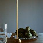 We designed this holder specifically to fit our Skinny Tapered Candles. Made from solid brass, it has a paperweight-like feel. Pair it with our Spike Candle Holder for a layered look.